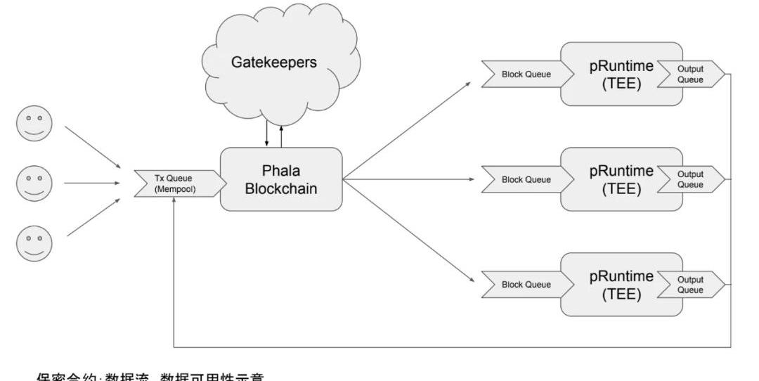 Phala的Gatekeeper维护总帐本共识层外,他们把计算和存储引入链下或layer2。并行计算就在这里实现。2.让计算层实现并行计算。这里要先说Oasis,其计算层称为Paratime,可以看作是一个个独立的链,或者看作一个runtime集群,不过,在Oasis网络的建立初期,Paratime大多还部署在云里,并没有全面替换具备TEE的设备作为网络基础设备。随着进度推进,Paratime的节点会全部具备TEE能力,保证其安全性。