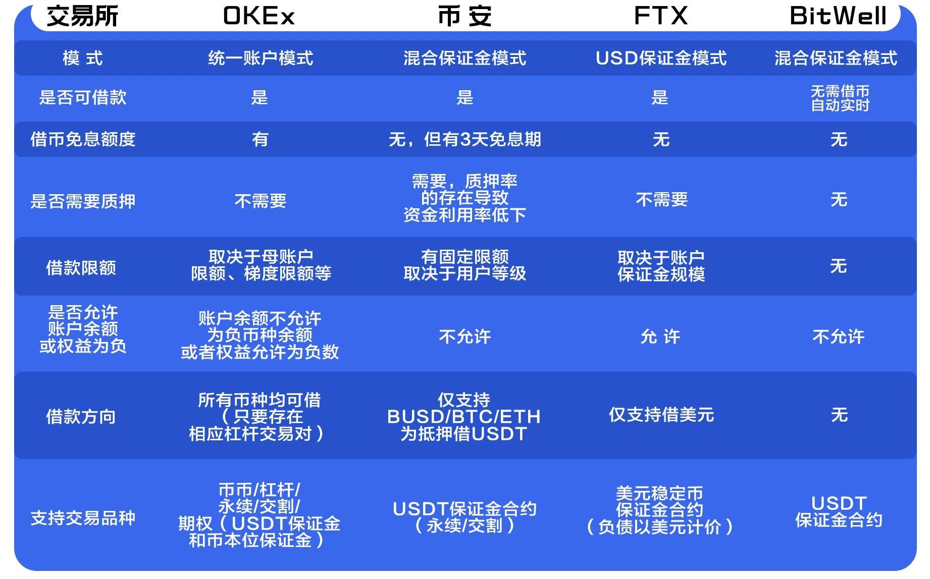在上述四家方案中,OKEx的资金利用率最高,特别是「自动借币」功能更是省去了大量的手续费,方便用户进行大规模交易。并且在合约应用场景中,OKEx的币本位合约更加方便用户对冲,而FTX以及BitWell目前并未开通币本位保证金合约。