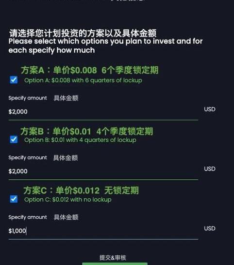 3.选择您的认购方式注:在本次KYC期间,我们希望收集关于您感兴趣的投资方式及金额意向,这不影响您3月12日在公募时的选择。在三种认购方式中选择您的投资偏好,例如下图中,我们选择了“方案C”。