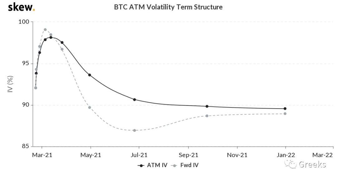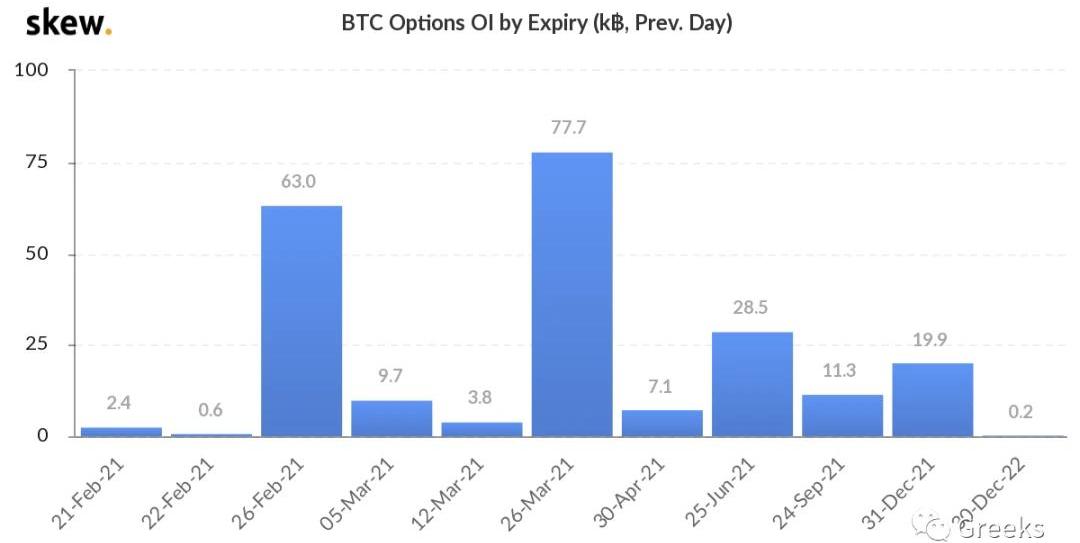 随着比特币和区块链的火热,越来越多持负面评价的公众人物态度都转为中立或者支持,其中不乏比尔盖茨这样的世界前首富,自不必说本来就是加密货币粉丝的世界新首富马斯克。这是一股浪潮,推动着所有人向前走。播报数据由Greeks.live和Skew.com提供。BTC历史波动率10d81%30d110%90d92%1Y87%期权成交量6.64亿美元,目前持仓量为110亿美元,持仓量继续创造历史新高。各标准化期限隐含波动率:今日:1m98%,3m92%,6m90%2/20:1m100%,3m96%,6m93%比特币不断创造历史新高,但是IV一直有明显的下降,现在的IV水平接近于元旦附近,但是币价短短两个月已经翻倍了。以前的播报中提到过,现在购买稍稍虚值一点的期权十分划算。