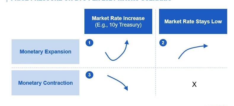随着纳斯达克市场和比特币价格同时下跌,以及美国10年期债券利率的上升,许多人担心比特币的价格方向。恐惧原因是因为市场利率上升,比特币价格暴跌超过20%,今后市场气氛将可能转向风险规避模式。我们认为,链上指标和宏观经济指标是比特币价格的核心驱动力。实际上,最近由通胀预期上升引起的美国10年期国债收益率的上升是最有可能出现的情形。与很多人的担心相反,尽管比特币价格将经历短暂的起伏,但长期仍具有更大的上涨空间。去年下半年,我预测2021年宏观经济学将有两个重要变量。第一,疫后经济复苏,通货膨胀预期是否会导致市场利率上升?第二,当市场利率上升时,美联储将如何设定应对政策?如果使用这两个变量进行推演,则共将产生三个可能方案,本文先从可能性最低的场景开始说明。