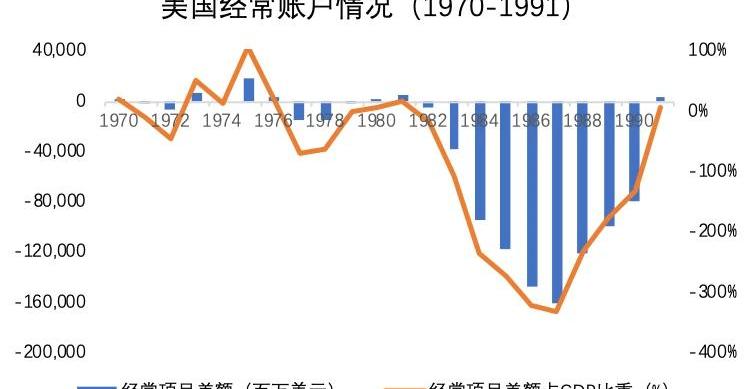 1979年8月新上台的美联储主席保罗·沃尔克正是“单一规则”的支持者,不过他采取了更务实的做法:同时盯住利率和货币总量,对高通胀实行了强硬的抑制政策,从1980年开始,在短短五个月内紧缩货币供给,连续加息时联邦基金利率从9.5%上升至20%。最终通缩性的货币政策取得成效,在1983年7月美国的通胀水平回落至2.5%。然而,解决通胀问题只实现了美元价值的对内稳定;要“寻锚”成功,必须实现货币的对外价值稳定---汇率的稳定,解决该问题,必须解决困扰美国多年的贸易逆差问题。在一个开放经济体中,货币对外贬值和对内通胀是一个硬币的两面。在沃克尔解决国内通胀问题的同时,高利率的货币政策导致美元升值,强势美元使得美国的经常账户迅速恶化,贸易逆差日益严重。为了维持美元在国际货币中的主导地位,美元不能轻易贬值。那如何在维持美元在外汇市场上保持稳定的同时,改善美国的国际收支情况呢?---强迫其他国家,尤其是对美国有主要贸易顺差国家货币升值。前面我们提到,在二战后日本和德国迅速复苏,一跃成为出口大国,在上世纪80年代成为对美国主要顺差国。为此,美,日,英,法,德五国财长1985年在纽约广场饭店签署了著名的“广场协议”,要求日元和马克对美元升值。在签订“广场协议”后,日本出口大幅下滑,加上国内宽松的货币政策,引发了股市和房产泡沫危机,进入“失去的三十年”,至今不能自拔,这是后话。