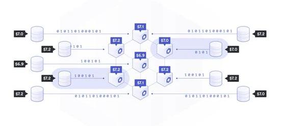除了数据源外,Chainlink喂价还包含多个预言机节点运营商,每个节点都会向其发送链上响应。这些节点运营商都由专业的DevOps团队运行,这些团队在运行关键的区块链基础架构方面经验丰富,并在链上保障着数十亿美元的价值。他们负责运行Chainlink核心软件,获取链下市场数据,并传输至区块链上。Chainlink喂价中的节点运营商会从多个独立的数据聚合商获取价格数据,对数据取中位数,剔除异常值并保障API接口连接性。因此,不仅每个数据源都全面覆盖所有交易环境聚合价格数据,而且每个节点都从多个数据源聚合数据并传输到链上,这样能更好地避免单点故障。