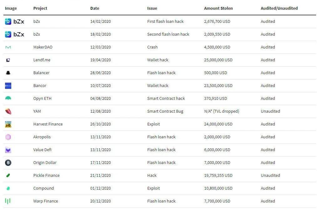 Source:https://public.flourish.studio/visualisation/3396454/更令人担忧的是算法攻击数量的增长。这些漏洞并没有使用后门,也没有试图破坏协议,而是操纵协议输入以获得有利的结果。他们往往依赖oracle的低效率,利用闪贷来制造失衡,然后利用它们获利。然而,算法事件可能并不总是有意为之。事实上,MakerDAO在3月份几乎崩溃,原因是价格波动引发的算法事件,不幸的,它与网络堵塞又恰巧同时发生。算法事件很难测试。实际上,最近许多受到攻击的项目以前都经过审计的。这个问题不仅仅局限于小型初创公司,它甚至使诸如Compound和Aave之类的大型项目都面临风险。这进一步增加了潜在的多米诺骨牌效应的风险。该行业试图通过越来越多的去中心化保险解决方案来解决这个问题,但未来需要解决测试和质量标准的问题,以避免痛苦的挫折。