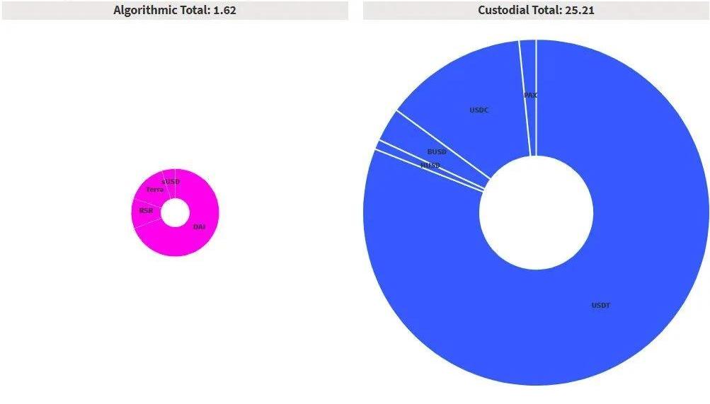 Source:https://public.flourish.studio/visualisation/4752301/稳定币提供了一个与任何主要加密货币相比波动更小的计价、交易和结算机会。这就是为什么它们成为了DeFi生态系统的命脉。尽管如此,与行业中其他事物一样,还有托管和DeFi解决方案。就目前而言,还是托管领先,TetherUSDT远非市场上占主导地位的稳定代币。但是,由于担心交易对手风险以及集中参与者通过将钱包列入黑名单来冻结资产的能力,这些解决方案最终可能会失去吸引力。