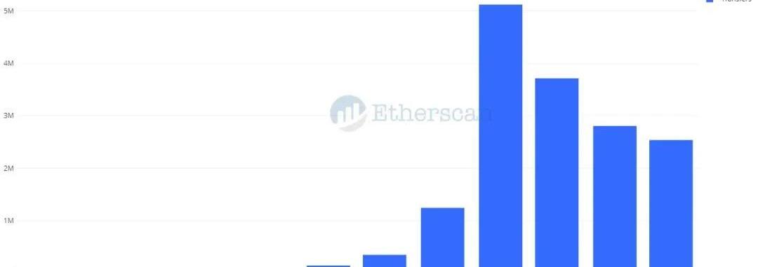 Etherscan在8月初满足了用户对流量性挖矿的请求。自那时以来,该页面上已列出近500个代币。追踪这些代币的转移显示,9月份出现了大幅增长。尽管在同一月份整体转账和活跃地址都有所减少,但还是发生了这种情况,这提供了一些可信的观点,即持续的流动性挖矿是由一小部分以太坊用户执行的。