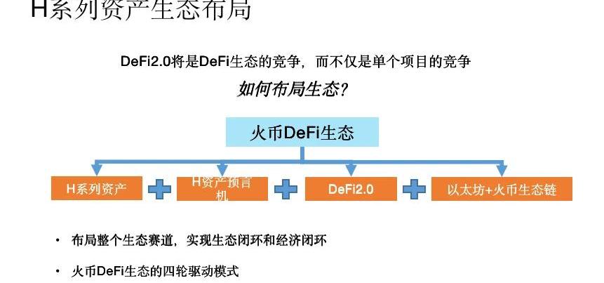 再举个关于发债的例子,在传统金融里实际上只有机构才能发债,普通人是发不了债的。但在DeFi领域,债是人人都可以发的,MakerDAO的DAI就是一种债,最近比较火的算法稳定币更是一种新的颠覆。DAI就相当于传统金融里的抵押债券,但与传统金融模式的区别在于人人都可以发DAI,用户把自己的资产抵押进去马上就可以生成,不需要任何的第三方机构,全世界的任何人都可以参与,而且几乎没有成本。这样的效率是传统金融根本无法比拟的。DAI的流动性也不受地域限制,在全球范围内不管是去中心化交易所还是中心化交易所都可交易。用户需要借款时,可以抵押资产生成DAI,再将DAI换成美元,不需要找金融机构或是银行,流程非常方便。目前DAI的资产规模已经超过10亿美金,是DeFi里最大的项目之一,这是曾经所有人都想象不到的。最后一个例子是Uniswap,大家都比较熟悉了,我也就不多讲了。Uniswap解决的就是人机交易的问题,我们曾经是到柜台取钱,后来是到ATM取钱,未来你将可以在Uniswap上随时兑换自己的资产,全球所有的人都可以7*24不受任何影响地参与交易,也不需要任何对手方的确认。基于这些变化,我想跟大家分享的是一个很重要的脉络,即未来金融范式正在发生变化,大家可能感知到了一些数据的变化,但是没感知到这股变化的力量有多大。我认为这个力量可以大到,再过五年大家讲的就不再是传统金融、互联网金融了,我们生活中每天使用的就是数字钱包。关于刚才讲到的贷款以及交易,我们火币集团也做了几件事情,除了投资、孵化、联盟这些事情这些为DeFi世界输血的举措之外,火币集团发的H类资产已超过了四亿美元,这意味着DeFi总锁仓量的至少2%可以理解是由火币集团推出的。那么HBTC这样的资产有什么好处呢?其好处在于你可以把这些资产放在DeFi应用去生息。在此之前,用户把资金放在钱包里是拿不到任何利息的,拿去交易又担心币变少。现在这样就像是以前的余额宝或是基金,你将资产存进去就可以生息了,几乎没有风险。关于收益,目前Curve里大概能拿到8个点的年化,BTC能拿到8个点已经是非常厉害了,随着交易量的增加实际收益还会超过8个点,因为会有交易费用分成,这意味着所有的收益最后都给了存款人,没有中间人佣金,Curve在这里不收取任何费用。除了HBTC之外,H系列资产还包括HDOT、HBCH、HBSV等等,许多资产以前是没有地方生息的,持币没有任何利息和收入,所以我认为DeFi是所有持币者最大的福音,我们推出了一系列的H资产给用户创造了这样的场景。火币集团在整个DeFi领域的布局有一条非常清晰的脉络,主要是四个方面。