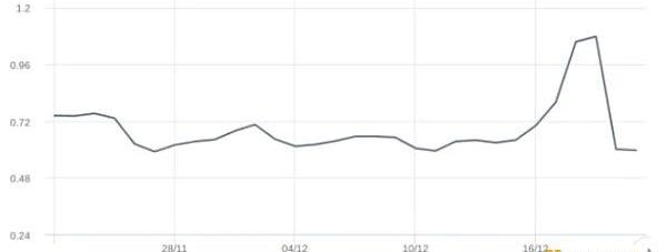 请读者留意,即使在12月21日BTC价格疲软,每周资金费率仍旧没有跌到负数。这一数据表明,多头和空头的杠杆率都差不多。这一数据没有倾向性,因为买卖双方都能加大押注份额。社交网络活跃度达到高峰