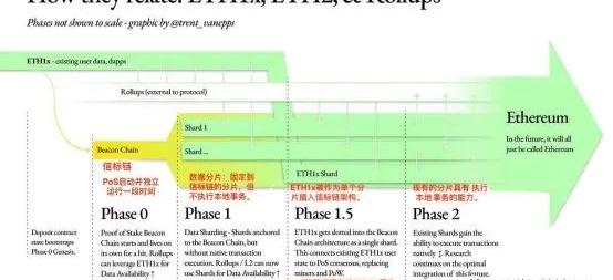 ETH2.0研究团队在11月最新的AMA活动中透露,目前,实现数据分片及合并的研究工作都已完成,只剩下工程开发和协调问题,同时,轻客户端、合并和分片将会并行开发,这种工作并行化意味着双链合并可能会提前到来。不过对于开发者来说,由于要处理不断增生的ETH1,合并的协调工作会较为艰难。因此,Vitalik认为,针对合并和分片,我们要在2021年年底才能看到成熟的测试版本。这意味着,至少要到2022年,我们才有可能看到ETH1与ETH2的正式合并。根据官方文档,阶段0开启后,将有两条活跃的以太坊链,用户可以将ETH从ETH1发送到ETH2,但是无法再将ETH迁回ETH1。12月1日阶段0的信标链正式启动。到了阶段1,数据分片允许交易事务并行,将成为未来以太坊可扩展性提升的关键,这时,ETH1链和ETH2链仍将并行运行。阶段2则是整个系统的功能开始融合的阶段,分片链从简单的数据容器过渡到结构化链状态,并且将重新引入智能合约。而ETH1与ETH2的合并将发生在这中间的阶段1.5。在彻底合并前,ETH1将保持活动状态,同时在ETH2上进行测试和过渡。这意味着网络上的ETH奖励将同时支付给以太坊2.0验证者和PoW矿工。因此,这两条链条的总通货膨胀率可能最初会飙升,但最终会趋向于0-1%。