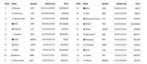 来自|Cointelegraph,编译|PANews经过漫长的等待,比特币价格终于回到三年前的价格范围。2017年,当比特币价格达到近19,900美元峰值时,大多数山寨币也都疯狂上涨,有的山寨币单周收益率甚至达到200%或更高。但现在,虽然比特币价格基本维持在19,000美元区间,但山寨币的表现似乎并不尽如人意。