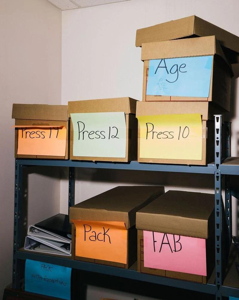 克雷索纳的“临时作战室”摄影:WilliamMebane,《彭博商业周刊》订单开始慢慢而纷纷地发了过来,车间工人只能查看每份订单的纸质副本,才知道该做什么。所幸工厂的仓库里有一批旧电脑,Hammer将它们摆在“作战室”,用来打印表格。“我们去了史泰博,把他们的打印机、纸张和墨盒几乎购买一空。”销售人员的电脑也被入侵了,所以他们无事可做,于是哈默让他们系上安全装备,给车间工人传送纸质订单。