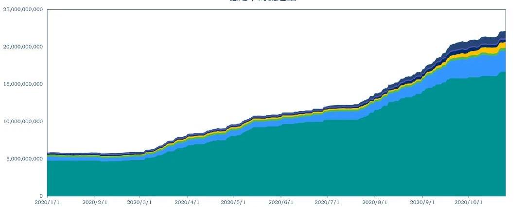 70%左右的稳定币仍然选择以太坊作为主要的发行平台,且除USDT选择发行在多条链外,大部分稳定币选择以太坊作为唯一的发行平台。而在以太坊持续拥堵期间,除Tron上的USDT稳定增加外,稳定币也逐步走出了以太坊平台。USDC选择了多个智能合约平台部署,而BUSD则在自己的生态内开始扩张。USDC已在Algorand/Solana上部署Centre联盟在9、10月中公布了几条合作信息,宣布将在Algorand、Stellar、Solana上部署USDC资产。其中Algorand和Solana上供应量已分别达到718.0万美元和2500万美元,而Stellar上的USDC将在2021年一季度发行。BUSD在BSC上持续增长BUSD作为币安发行的稳定币资产,除在以太坊上以ERC-20的形态存在,还在BinanceChain和BinanceSmartChain上部署。随着BSC上挖矿的进行,BSC上的BUSD持币地址已经超过9100个,与以太坊上的BUSD持币地址数量基本持平。由于资产的跨链桥由币安交易所提供,因此BUSD在各链上的供应量并不容易统计,但根据bscscan显示,BSC上的BUSD的供应量应已超过4000万美元,其中Pancake中的BUSD数量超过1800万美元。三、稳定币吸引全球监管关注
