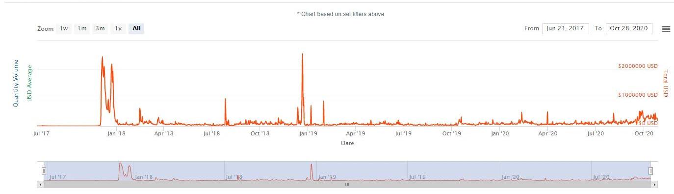 我们先来简单了解一下NFT,NFT包含在其智能合约中记录的标识信息。正是因为这些信息使彼此各不相同,因此每一个非同质化代币都是不一样的,不能直接用其他代币替换,也不能像其他代币那样可以彼此交换,就像世界上没有两片完全相同的树叶一样,且最小单位为1,不可分割。相反,同质化代币可以简单地彼此交换,也可以分割,像BTC可以分割成0.001进行转移。简单来讲,NFT具有独一无二、稀缺、不可分割的特性,也正是因为这些特性,NFT具有更加强烈的私人财产属性。一直不温不火的NFT,今年通过菠萝的暴涨以迅雷不及掩耳之势进入市场,有意思的是这个项目出现的本意是为了讽刺市场上大量涌入的“5分钟DeFi项目”而诞生,更让人不可思议的是一小时建社区、半小时发代币的菠萝在24小时内累计产生超120万美元的交易量。不得不说,群众的力量是伟大的,获得菠萝空投的参与者手都没伸就吃到了天上掉下的馅饼。猝不及防的财富信息在圈内开始迅速蔓延,菠萝的价格短期内暴涨到1930.2美元,仅用不到一周的时候就走过了比特币近10年的路,菠萝卡片更是被争相收藏,这一事件带来的行业层面的影响是DeFi+NFT的不断创新。于是各类带有NFT标签的艺术品、收藏品也开始进入了交易模式,目前区块链艺术品《PortraitsofaMind》系列第21幅作品以超13万美元的价格售出,创下NFT拍卖价格史上的最高记录。随着NFT的火爆其种类也越来越丰富,“蝙蝠侠”、“NBA”也纷纷与NFT结缘推出收藏卡,种种迹象表明,NFT似乎在承接DeFi的热度。NFT的属性与艺术品、收藏品、游戏等确实有天然契合性,但是谈及接棒DeFi似乎为时尚早,同为DeFi与NFT头部项目的Uniswap与OpenSea,截止10月份从Dapp.com数据来看,活跃用户分别为30万人与2.4万人,可以看出,NFT依然是非常小众的存在,同时在流动性上与DeFi也相差甚远。非同质化通证市场的规模也仅为DeFi市场规模的2%,本次NFT的意外“突围”不过是流动性挖矿高收益带来的市场投机行为。非同质化代币并非今年才进入市场,2017年的Cryptokitties是NFT的第一个落地应用,但由于应用领域与受众群体的局限性也仅在2018年、2019年出现过昙花一现。今年的NFT火爆也是在菠萝的高收益与“故事”的强推下“牵强”的进入了市场,又被委以接棒DeFi的“重任”,但不管是从应用领域、受众群体、市场规模等方面都还为时尚早。