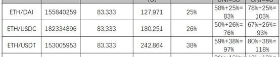 挖UNI本身有两份收益对于Uniswap类的DEX,包括Curve、Balancer、Mooiswap等等,其挖矿奖励由两部分组成:一是手续fee、二是代B奖励。尤其是Uniswap这种超越CEX的成.交.量,手续fee奖励不会比代B奖励低多少。