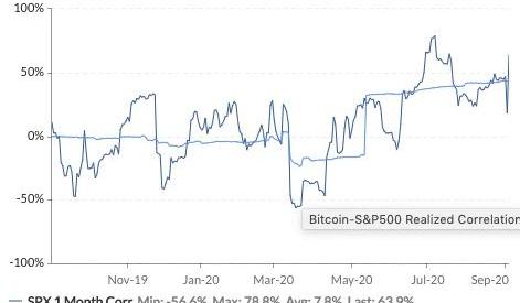 好好的加密市场,为什么突然开启大回调?社群中有一种观点是:中心化交易所与去中心化交易所开战,利用数据砸盘,试图让去中心化交易所的流动性挖矿崩盘。这种声音并不科学,也缺乏实证。首先,交易所之间并不是铁板一块,相互之间也有利益矛盾,“联合起来共同对抗去中心化交易所”有阴谋论之嫌;即便某一家交易所有心却也无力,因为整个市场是联通的,并没有一家独大,做空市场的机会。最后,从数据来看,中心化交易所在这场DeFi竞争中,并没有丧失太多的利益,交易所BTC储备量不断上涨,说明古典投资者依然青睐中心化交易所。Odaily星球日报综合各方考虑,认为主要有三方面的因素带动市场下行:DeFi投机套现成也萧何,败也萧何。从6月开始的这波牛市,是因DeFi而生,也可能因DeFi而亡。这次下跌,与DeFi投机套现密不可分。过去几个月,流动性挖矿项目不断涌现,基本模式是:用户存币,给予其项目代币作为奖励,用户再去二级市场将代币变现套利。看起来,这一模式与传统金融的「高息揽储」有些相似,但终归是不同的。根本原因在于:一,传统金融通过放贷收益,能够填补用户存储收益,但币圈绝大部分项目只有存、没有贷,也就不能形成稳定的现金流,并且用户拿到的只是项目代币,并非有稳定价值的资产。二,流动性挖矿项目原生代币的价值,来源于二级市场炒作,一旦没有买盘,则价格会很快崩塌,项目也基本宣告死亡。因此,我们看到的情况基本是:挖矿大户“挖-提-卖”,套现离场;二级市场无法参与挖矿的散户,在KOL的影响和巨额利益的诱惑下,甘当接盘侠,为大户提供买盘。这种模式下,大户基本稳赚不赔,我们也能看到一些大户挖矿,5天套现500万美金。这样的项目多了,最终导致市场存量资金被掏空,难以支撑比特币价格继续上涨。值得注意的是,在这次下跌前,DeFi新项目SushiSwap和Pearl的出现,给市场带来新一波狂欢,也是难以为继的疯狂。美股闪崩疫情当下,全球经济放水,比特币与美股也从中受惠,水涨船高。同时,Odaily星球日报发现,比特币与美股之间的相关性开始增强。Skew数据显示,从4月开始,比特币与标普500指数月度相关性显示为正数,意味着正相关;7月7日,月度相关性达到最高值78.8%,显示出强烈的正相关性;数值后续有所下滑,但依然保持在50%左右。