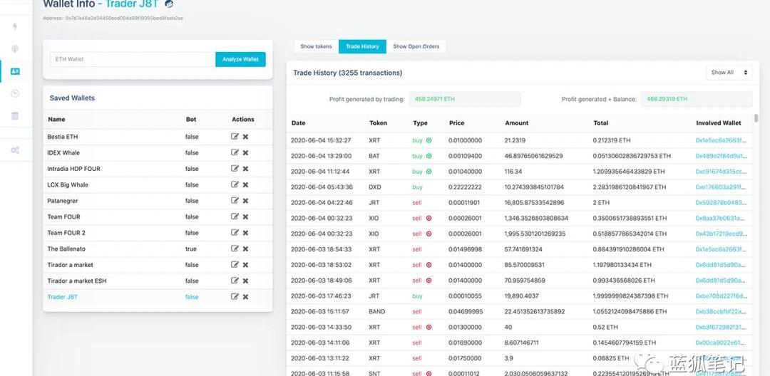 可以发现价差最大的代币。根据数量进行过滤,尝试以较低价格购买并以较高价格售出。发现IDEX上钱包信息可以保存、比较、搜索任意用户的钱包。检查用户自己的交易历史记录、订单、收益等。