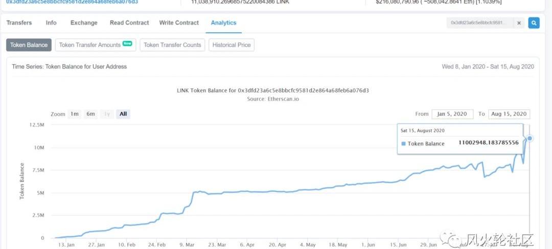 这俩逻辑类似上面的YFI,YFL我们不太清楚,网传里面存了3000万美元的Link。YAM前几天挖矿的那八个代币,其中也有Link,都涨幅亮眼,也是众所周知的,YAM挖矿地址目前有430万枚link,排在link持仓中的第十二位,之前因崩溃下降了很多,看这两天link的数量又回升了:结语