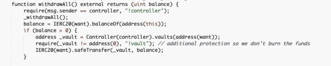 …从而将资金转入新策略。你可以在这里亲自检查控制器。简而言之,控制器可以设置每个金库的策略,也可以更改现有金库的策略。存在资金被盗的风险