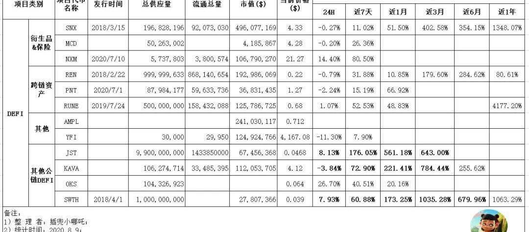 预言机板块,整理了8个代币,如有遗漏,后续持续更新添加。