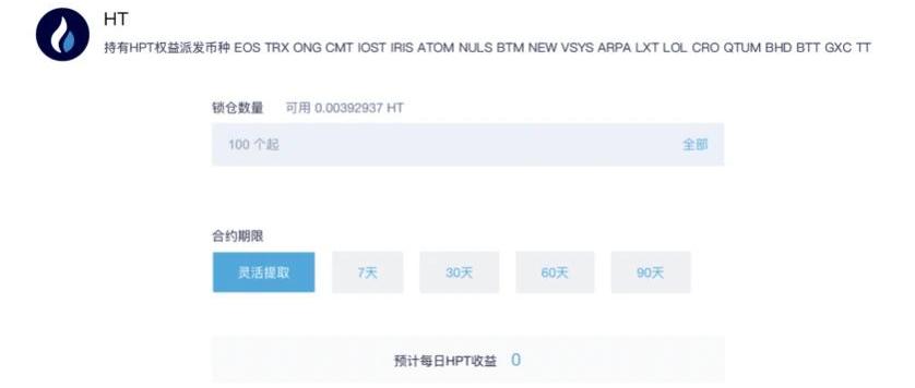 表4-1火币的年度运营活动18年的活动相对来说比较难量化。Hadex的规则是围绕上币投票进行的。众多项目方参与竞选,HT持有者是直接使用HT进行投票,一些项目方会主动和HT持有者达成空投协议。因为项目方相当多,因此具体数据很难量化,但是整体而言会有10-15%的HT币本位回报。而19年的数据会更加直观。因为HT持有者可以直接参加Prime项目投票,并且获得折扣空投。如果投资者只采用最简单的交易策略,即将领取到的项目Token第一时间市价出售就会获得不错的奖励。根据此前《关于HT类PoS奖励的有趣结论》一文,它统计了HuobiPrime、FastTrack、PrimeLite、转板等活动的数据。可以看到,如果HT持有者在2019年3月开始持有1000HT,并参加所有Prime、FastTrack活动,那么截至19年8月,他将可以积累到1274枚HT,增幅27.4%。2020年FastTrack推出的市场环境相对更加乐观,一是比特币的点位较高,二是特定区块链应用赛道仍然是热度空前,例如DeFi。火币的上币通道沉寂已久,市场上应该酝酿着一些上币热情。虽然新FastTrack活动刚刚开始,但是从过往活动的力度而言,如果完整参加本次FastTrack活动,币本位收益可能约有20%。接下来让我们再看看火币矿池的持币生息通道。截至20年6月22日12:00GMT+8,90天锁仓1000HT每日可挖30.5枚HPT,折合约0.042枚HT,年化约为15.3HT,大概等同于1.5%币本位年化收益。