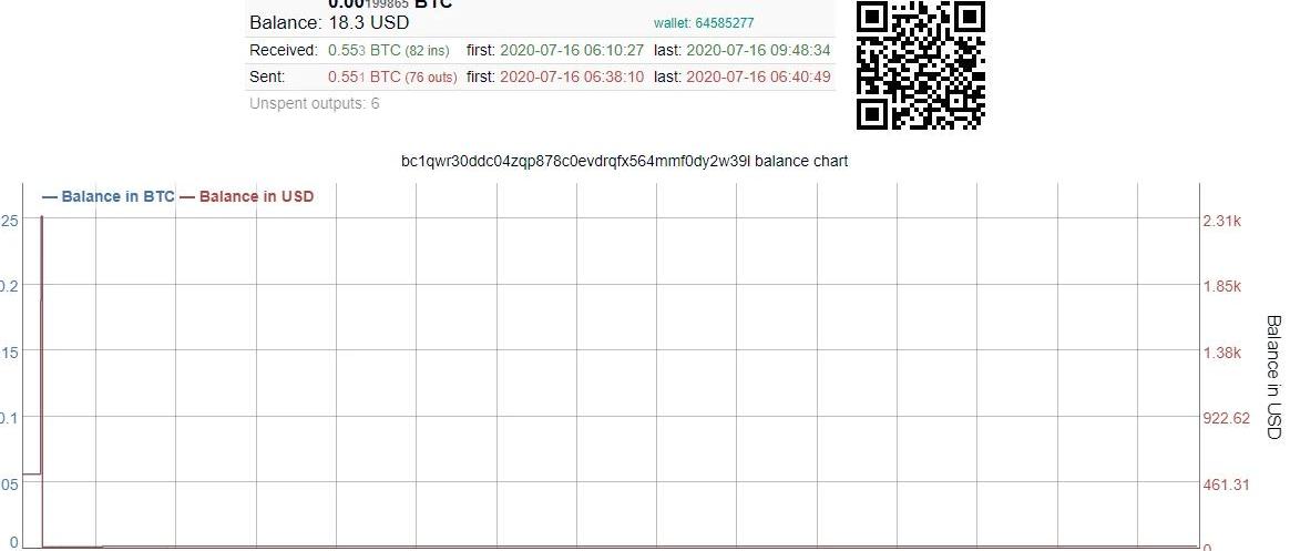 图3攻击者发布的网页地址链接到第二个BTC地址,接下来的一个小时中,这个地址也用于随后使用其他被控的账号发布的推文中。
