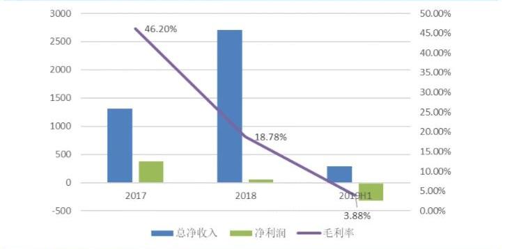 如果真的要押注矿机赛道,相比于买亿邦国际,嘉楠耘智目前3亿美元的市值可谓“价值洼地”。业务构成两家矿商,矿机销售及相关收入占比都相当之高。招股书显示,2年来,矿机销售收占嘉楠耘智总营收均超99%,而亿邦国际的矿机及配件销售收入占比则大幅下降,从2018年的96.3%降至2019年的82.4%。与此同时,矿机运营维修收入占比大幅提升,从2.6%升至14.5%,非挖矿业务收入占比也略有提升,从1.2%升至3.1%。亿邦国际因矿机销售占比较低,一些观点称其“对比特币挖矿业”的依赖较低,实际上并不成立。招股书显示,2019年,亿邦国际销售矿机收入1.09亿美元,矿机托管和运维业务收入1570万美元,两者合占亿邦国际总收入的96.9%。尽管其身处挖矿产业链的不同环节,但都深受矿业兴衰的影响。尤其是从去年到今年,正逢新旧矿机换代时刻,大算力矿机一台能顶4台小算力矿机,用来托管矿机的矿场出现明显过剩。因此,亿邦国际拓展矿机运维服务线不见得有很大成长空间,也无法构建业务的护城河。因此,亿邦国际的业务比嘉楠耘智更多元不过是一种表面说法。经营业绩从下图中可以看出,亿邦国际在2019年销售收入大幅下滑,从2018年紧追嘉楠耘智的业绩降至仅为嘉楠耘智的一半。