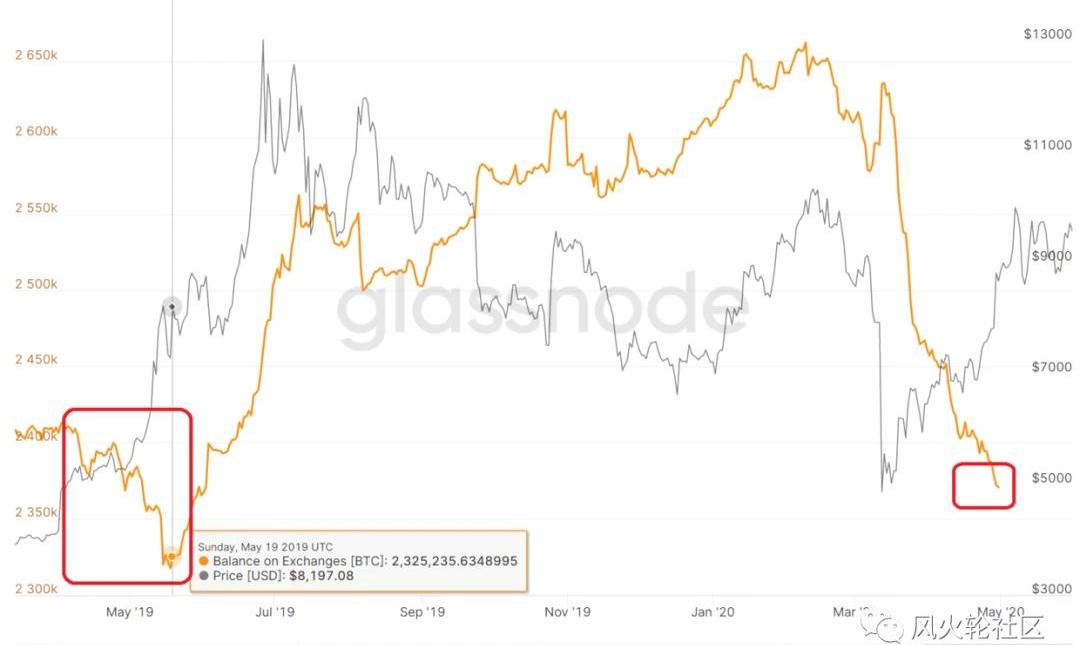 对此,一个比较直觉的认知是,有holder或者鲸鱼在买买提,貌似最近也有相关数据表明比特地址中的长期hold持仓是有所增加,而交易所仓位下降,某种角度,如果不太较真的来说,也意味着即时性的可抛售量在降低。总之,利好。但真的是这样吗?今天我们就来探究下。如果说作为看涨信号,到也还真能刻舟求剑,下图是glassnode提供的交易所总持仓量变化: