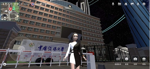 虚拟中传校园是中国首个开放于元宇宙平台的“虚拟大学”。借助街景地图、三维重建、三维引擎等数字技术,虚拟中传校园生动复刻了整个校园建筑物、公共设施及其比例关系,精准实现了数字孪生校园的搭建。