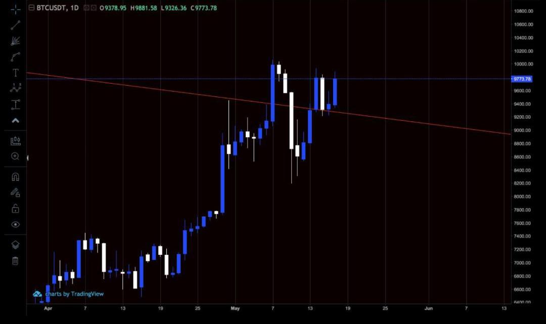 在以上图表中,比特币在出现小幅回调之前,刚刚突破了上升三角形区域。然后,BTC没有跌破0.382斐波那契水平线,转而上攻0.786斐波那契水平线。之前的研报指出,如果BTC的每日收盘价高于0.786斐波拉契回撤位,则比特币可能在看涨的情况下上攻10,000美元区域。上一份研报的质量如何研报发布后,BTC的每日收盘价高于0.786斐波那契水平。然后BTC在达到主要阻力位之前,继续上攻10,000美元的区域。与研报发布时相比增长了15%。BTC随后从10,000美元区域跌至8500美元的支撑位,跌破0.786斐波纳契回撤位。减半之后(红线表示),BTC再次升至0.786区域上方,随后空头无法将BTC进一步压低。目前价格在10,000美元区域附近,多头和空头之间发生了明显的缠斗。比特币长期价格愿景价格走势看涨目前,就长期价格愿景而言,比特币正处于关键时刻。它目前处于对称三角形区域的外部,似乎在测试向上的阻力,如下图所示: