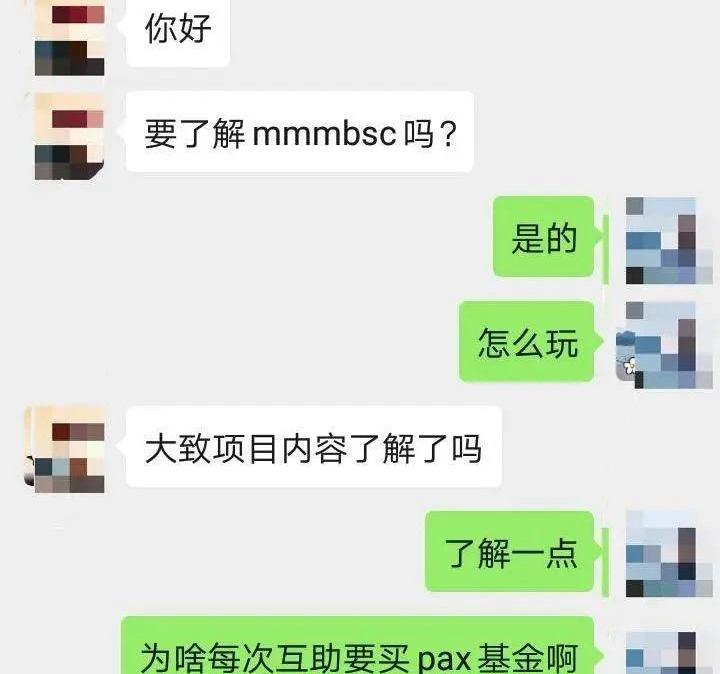 一直以来MMMGlobal都是使用比特币作为支付手段,因此一度被人称为比特币的“暗黑布道者”,如今这位“布道者”开始使用以太坊和稳定币了?在一篇宣传MMMbsc的文章中,作者进行了解释,MMMbsc之所以放弃比特币是因为比特币的基础协议无法实现复杂的智能合约逻辑,而以太坊则不存在这个问题。MMMbsc选择在ETH基础协议ERC-20网络上构建系统。而之所以选择稳定币而不是ETH作为系统货币,是因为ETH存在行情波动变化,这会让MMMbsc参与者的资金蒙受损失。USDT是使用最广泛的稳定币,为什么不选择它呢?文章解释道,USDT在银行的抵押资金并未受到任何金融机构的监督和定期审计,没有人知道该公司向银行抵押的美元数量。而PAX既具备稳定币的特点,又接受了美国金融监管局的监督和审计。因此,MMMbsc最终选择了PAX。2020年,USDT的频繁增发引起加密货币行业的关注,关于“USDT出圈”的观点也经常被提及。如今,在MMMbsc这里,PAX确实是出圈了。在查询MMMbsc相关资料的同时,DeepChain深链还发现了一个域名为MMMbsc.com的中文网站。该网站充斥着关于MMMbsc的各种信息,诸如“加入mmmbsc的具体流程?”、“mmmbsc每日数据”等等,另外还附有微信联系方式。不过该网站最终还是指向MMMbsc的官网,也就是说这是MMMbsc的中文宣传、引流网站。通过网站上的微信,DeepChain深链联系到了该网站的相关负责人。