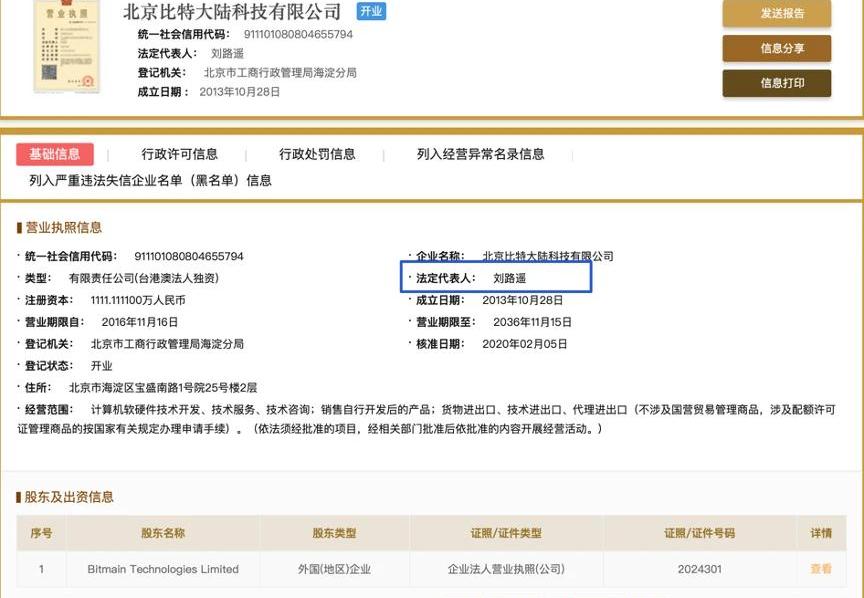 这已不是詹克团第一次试图用法律手段夺权。去年10月,吴忌寒取代詹克团成为北京比特的法定代表人,并解除了对方在公司的一切职务。之后,詹克团曾因不服海淀区市场监督管理局作出的工商变更登记决策,向海淀区人民法院提起过行政诉讼。根据北京法院审判信息网的公示,詹克团于去年11月14日提出撤诉。撤诉之前詹又申请了行政复议。从目前工商信息看,北京比特的法定代表人尚未变更。从《公司法》赋予企业自设公司章程的权利看,詹想要重回权力巅峰,还需股权优势。企查查信息显示,北京比特是比特大陆香港主体BitmainTechnologiesLimited的全资控股公司。也就是说,北京比特的唯一股东是香港比特。