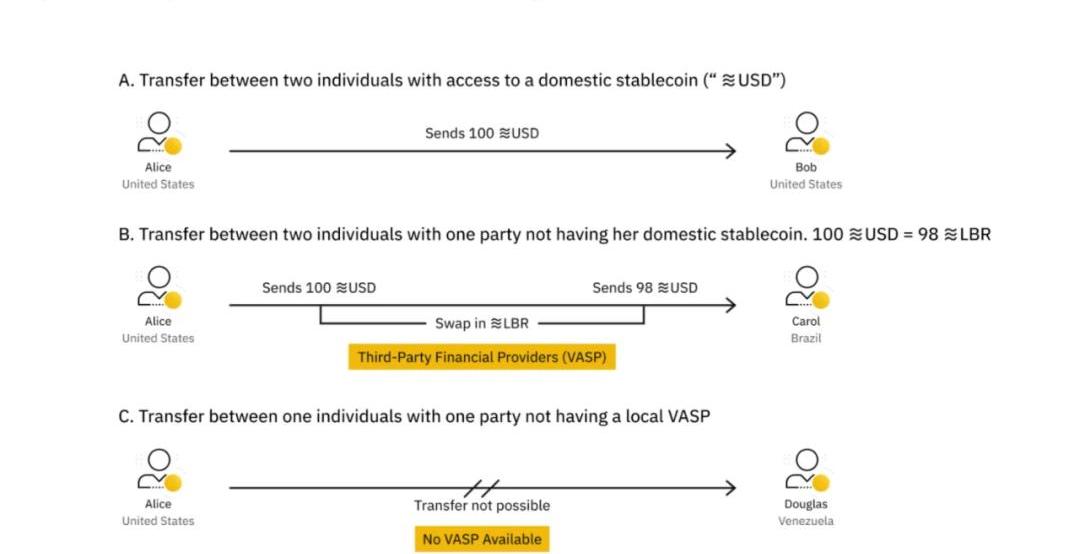 通常,Libra使用三层设计来保持符合适用法规的要求。监管发生在Libra协会级别,协议级别和VASP级别。前两个是内部的,而最后一个级别是VASP的外部化。Libra协会向瑞士监管机构FINMA申请了支付系统许可证。为了处理该申请,FINMA启动了一个“学院”,其中涉及“来自世界各地的20多个监管机构和中央银行”。因此,支付系统很可能具有“系统级重要性”的资格,并且必须遵守BIS制定的更为严格的标准。需要注意的是,目前支付系统很少,而且大多数由中央银行操作,并且只在区域范围内运作。这样,Libra就可以对支付系统进行变革,就像SpaceX对太空工业所做的那样。协会层面的额外监管是内部规定的,并规范(i)Libraverse所有各方(包括协会成员)的尽职调查,(ii)与监督机构----金融情报室("金融情报室")建立基于风险的合规方案,以及(iii)基于风险的参与条件。协议层面是作为一种自动监管所有链上活动的规则来执行的。它对特定地址的交易和余额施加限制,并防止受限的地址发送或接收货币。此外,位于特定司法管辖区的钱包地址可能会通过其IP地址被识别,随后被阻止参与Libra网络。协议层面还涉及非托管钱包用户(UnhostedWalletusers)及其较高的风险情况。非托管钱包用户不像其他用户那样经过相同的入职程序,因此从反/反恐怖主义的角度来看,其构成了更大的威胁。虽然其目的是通过特别严格的监督和较低的交易/余额门槛来管理这一风险,但用户可能会在Libra区块链上进行女巫攻击,并简单地创建多个钱包。这种行为将在协议层面上被识别并阻止。Libra的最后一个相关内容涉及到VASPs。VASPs将被迫遵守所谓的"交易规则"。该交易规则自2020年1月起适用于加密货币资产,要求受监管实体传递资产所有者的信息。该协会将提供"链外协议,以便于遵守交易规则和记录保存要求"。最有趣的是,LibraNetworks可能会强迫非托管钱包用户在被要求时也提供同等信息。Libra强调说,它打算“在未来几个月内”迁移到主网。同时,FSB先前提到的建议敦促监管机构在推出Libra之前推出当地的相关法规。由于该法规不仅适用于Libra的稳定币,而且更广泛地适用于所有稳定币,因此现有项目也可能需要遵守该法规。然而,对现有稳定币的压力不仅源于稳定币成为监管机构关注的焦点,而且源于对稳定币非交易功能竞争的加剧。Tether和其他一些规模较小的参与者目前主导着现有的稳定币市场。这种稳定币的用例主要依赖于现有的加密货币行业,用于在交易所进行交易,和跨多个交易所的套利,以及在各种中心化和去中心化的程序中的更广泛使用。相反,Libra的用例非常不同,因为它侧重于与交易无关的用例。如前所述,Libra的重点是金融普惠(financialinclusion),并建立由合作伙伴网络组成的全球生态系统中用于支付应用程序的零售和公司金融基础设施。一个特别值得注意的用例是改进货币的技术功能。哈希时间锁定合同之类的功能可以极大地改善当前的支付环境。正如前一份关于HTLC的报告中所讨论的那样,原子交换与付款和支付与付款之间有许多可以想象的好处。虽然正如1.3节所讨论的那样,自2019年6月以来,几个最著名的合作伙伴已经选择退出,但我们预计,一旦新的路线图和监管环境让Libra的预期更加清晰,我们将有多个新的合作伙伴加入。如果?LBR直接引用的产品被广泛使用,那么我们可以想象新的稳定币,包括以货币为基础的稳定币和以加密货币为基础的稳定币,将其在Ethereum等多个无权限网络上发行。这种乐观的长期愿景也可能意味着未来一旦网络进一步成熟并被更普遍地采用,LibraCoins将被添加到多个加密货币交易所。如果是这样的话,LibraCoins可以作为现有稳定币的替代品,从而增加对现有市场参与者的竞争。然而,在这种情况下,对加密货币行业来说,好处可能是巨大的,有助于推动大众的采用。简而言之,LibraCoins将在汇款、可编程货币和其他应用等非交易用途上与现有的加密货币竞争。然而,Libra网络的许可组件,智能合约需要经过验证者的预先批准才能部署,这将阻止其在去中心化金融等新兴领域的采用,在这些领域中,任何人都可以部署一个新的协议和应用,并具有完全的网络可组合性。此外,LibraCoins和稳定币不太可能成为直接竞争对手。3.3Libra会帮助没有银行的地区建立起银行服务吗?
