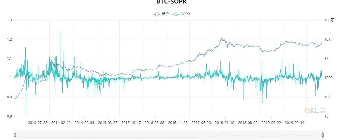 SOPR(SpentOutputProfitRatio),由Medium用户RenatoShirakashi于2019年4月创建,用来衡量投资者是获利或亏损的程度。该指标根据链上UTXO和市场价格数据得到,计算公式为: