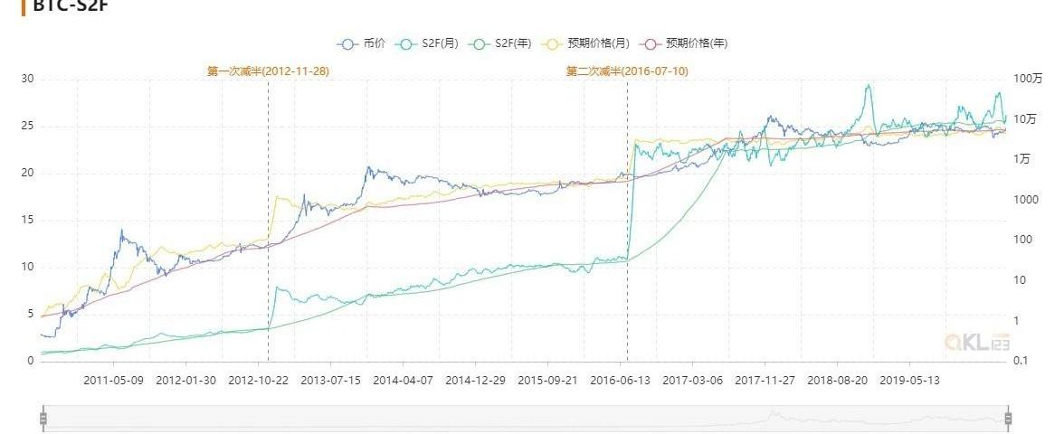 来源:QKL123所以,从供给角度来看,减半之后,比特币接近黄金的稀缺性,而且在未来四年将会逐渐超越黄金。另外,在S2F指标之上,@100trillionUSD给出一个历史数据拟合的模型:BTC价格=0.18*S2F^3.3。基于这个模型计算可以发现,目前比特币估值在9000美元左右,减半后四年内比特币估值会达到10万美元。二、“数字黄金”VS黄金