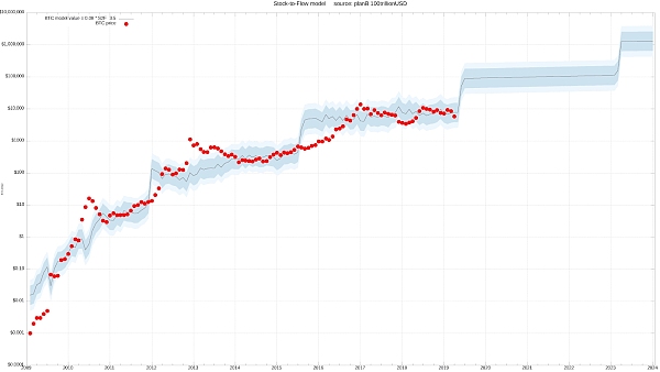 在3月13日的一条推文 中,存量产出模型的创建者PlanB说“比特币在模型值附近的波动性很好”。因此,根据PlanB,考虑到下一个减半周期的临近,预测价格没有改变。目前的365天平均价格模型预测,在预计减半时间(2020年5月9日)的价格为8426美元。