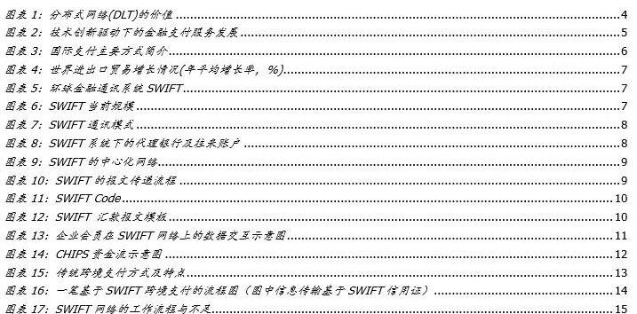 编者按:本文来自吉时通信,Odaily星球日报经授权转载。摘要以Ripple为代表的分布式账本技术给国际支付带来新的灵活性和启示。不同于传统支付系统多中介参与的模式,分布式账本技术(DLT,distributedledgertechnology)拥有去中心化、节点互信、数据可追溯等特点,其为国际支付带来诸多的灵活性。世界经济论坛将之总结为以下六点:简化操作中的重复代理、提高监管和披露的效率、改变信任降低对手风险、缩短清算及结算的时间、资金流动快,透明度提升、历史可追溯,提高安全性。中心化模式下的传统电汇等跨境支付处理速度慢,中间结算成本高,支付效率低,同时还存在一定的支付风险。在国际贸易中,电汇是较为常用的国际支付方式,背后需要一系列银行机构、清算支付系统等中介机构提供支持。目前国际支付清算体系中,无论是金融机构的资金流转清算,还是金融信息通信网络,大多是典型的中心化工作模式。分布式账本技术有望重构国际支付模式。以Ripple为代表的分布式账本系统可以同时完成信息传递和资金结算两项工作。整个支付过程由系统程序自动执行,响应速度快。系统的共识机制确保信用与安全。Ripple等分布式账本相对于传统的国际支付清算系统在诸多方面具有优势,但在由于各国的监管规定不同,实际国际部署中必然面临国际法规、政策协调的问题,Ripple网络相当于用户之间的联盟,国际/市场接受度方面也需要一定的拓展过程。因此分布式账本真正要在跨境汇款中大规模使用,还需要针对监管要求进一步优化和改进、加大市场拓展力度;同时,软件、协议层面的潜在风险、用户、银行端部署等细节方面亦需要进一步打磨。我们认为,跨境贸易与跨境支付面临新趋势、新需求、新模式的挑战,区块链有望开辟新空间。新趋势方面,高频次和小额度订单的点对点场景日益突出,随着跨境电商迅速发展,参与跨境贸易的中小企业日益增多,新的消费需求推动个人跨境消费增长,点对点式的国际支付需求快速上升;新需求方面,用户对更为简便快速的实时资金转账需求愈发迫切,传统以天计的资金周转无法有效满足跨境贸易的生产需求;新模式方面,去中心化的点对点支付将开辟新的跨境贸易、支付模式,随着全球化进程不断推进,国际支付清算的需求不再局限于大型企业,大量中小企业甚至个人消费者对点对点、快速支付体验需求日甚,以区块链为代表的分布式账本推动去中心化、点对点支付模式的发展有望成为未来国际支付新模式。投资建议。我们建议关注央行数字货币、区块链供应链金融和数字资产主线上的区块链服务企业。1、央行数字货币主线:四方精创、先进数通、高伟达、长亮科技、数字认证、格尔软件、新大陆、飞天诚信;2、区块链+供应链金融:易见股份、广电运通;3、数字资产条线:东港股份、金财互联、嘉楠科技、火币科技、前进控股。风险提示:监管政策不确定性、区块链基础设施开发不达预期。