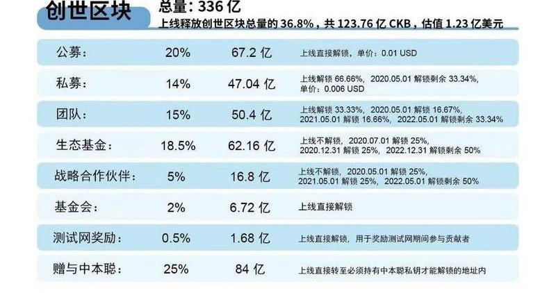后市难料,回到眼下,如此“高收益”的挖矿奖励对于整个网络意味着什么呢?从好的一面看,Nervos正通过经济激励来吸引重要的生态参与者,这拉高了NervosCKB的攻击成本,从而使网络更安全。不好的一面则集中在,当越来越多的投资者涌入,为市场带来中长期的抛压。“这个机器你不现在挖、不现在卖就没有意义,因为所有的盈利预期都是基于当前算力难度、当前币价的,对于奔着收益来的实在矿工,‘挖卖提’在所难免。“一位矿业资深人士总结道。除了“投机型矿工”进场,悬在投资者心头的还有CKB私募等相关方解锁带来的抛压。根据Nervos的设计,CKB没有总量上限。创世区块会产生336亿的CKB,其中84亿将被立即销毁,剩余分给相关参与方,解锁方式也略有区别。其中,私募、团队和战略合作伙伴的部分代币将在今年“五一”被解锁,届时会引发又一轮下跌吗?