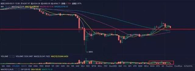 再从4小时线看,6000美元依然是当前比较重要的支撑位置,看其量能虽然未有较大的改变,亮点在于,上涨时量能有逐步复苏的迹象,而下跌时量能出现明显的萎缩,但谨记的是,行情想要进一步上行,需要的不仅仅是逐步复苏的量能,而是放大介入的量能,这一点量能的持续性决定了后期向上突破层层压力位时不至于无量回落。就如我们早行情所说的一样,昨日这样的走势对合约投资者来说极度不友好,1300美元的振幅基本上能剔除99%的合约追高者,所以说到最后还是回到现货和合约的问题,如若是现货,一夜过后价格依然在这个位置单子也无恙,但对于合约投资者来说一夜过后价格还是那个价格,但单子可能已经不复存在。目前虽然暂时在6000上方运行,但这个支撑位并不稳妥,在突破后便被快速打穿,近期还会有考验该位置支撑的概率,当前操作现货建议继续持有,合约操作者建议暂时不要以6000作为支撑,实在想做单怕踏空就以昨日的地位5661作为支撑,越靠近该位置时可以轻仓介入,设好止损,若是跌破该位置说明6900是短期的顶部,便止损且放弃抄底。