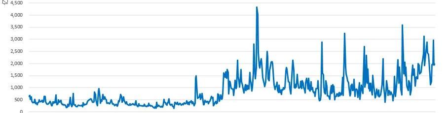 资料来源:非小号,TokenMania图4九大交易所历史每日总交易量变化