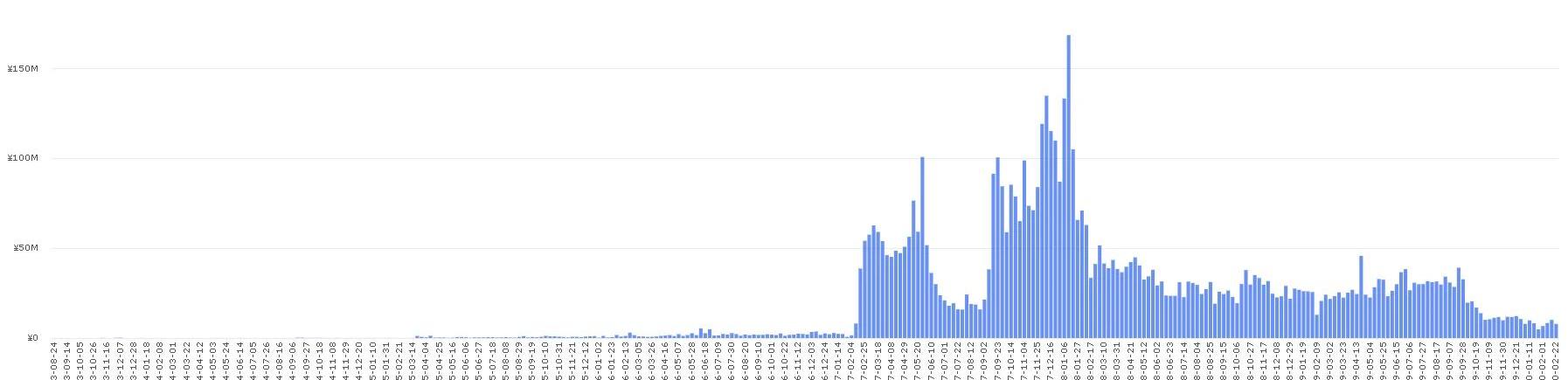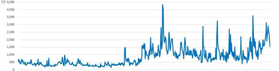 资料来源:非小号,TokenMania图4九大交易所历史每日总交易量变化