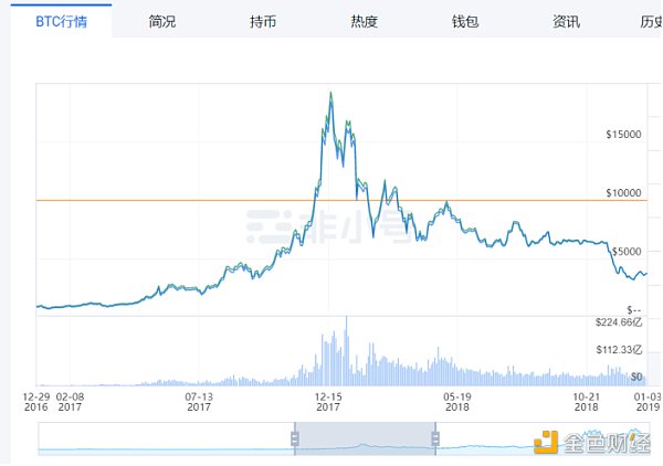 在2018年2月继续恶化,跌破7000美元,并在接下来的9个月中在6000美元到10000美元之间徘徊。11月上旬还在6000美元附近,但在一个月后,也就是2018年12月,价值不到3300美元。从2017年12月到2018年12月,比特币下跌83%。