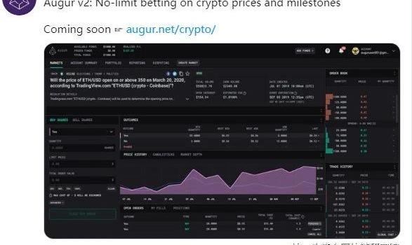 Augur基于以太坊构建去中心化的预测平台,预测市场以美国事件为主,用户基于现实世界的事件创建Augur预测市场,押注事件未来的结果,最后基于预测结果进行结算。原计划2020年1月AugurV2版本发布,目前处于待发布状态。项目官方Twitter反复强调V2即将上线,预计上线时间在2月初。