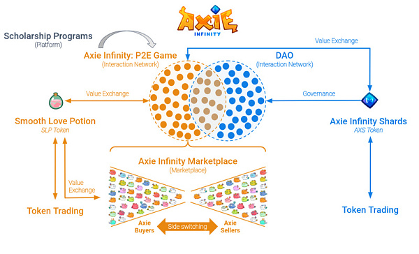 Axie Infinity 最初由 Sky Mavis 团队创建。然而,在另一个名为 Axie Infinity Shards (AXS) 的代币的帮助下,Sky Mavis 旨在将 Axie Infinity 的治理转移到去中心化自治组织 (DAO)。我的同胞 Atomico Angel Sarah Drinkwater将 DAO 描述为“具有共同目标和金钱的群聊”——这是一个准确的总结。为简化起见,AXS 代币的持有者将成为一个团体(或 DAO)的一部分,该团体对 Axie Infinity 项目的未来路线图进行管理和投票——本质上扮演分布式管理团队的角色。