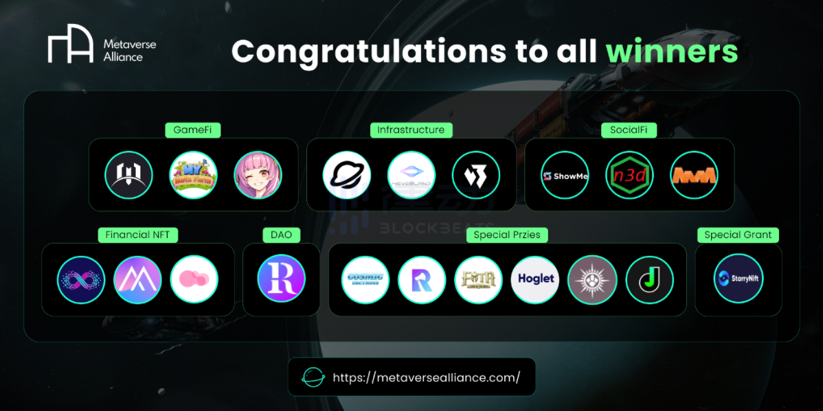 也非常感谢我们的合作伙伴,他们相信 Metaverse Alliance 的潜力,并帮助传播把关黑客松,一起创造了奇迹。再次感谢我们的评委在繁忙的工作中抽出时间来评选项目。