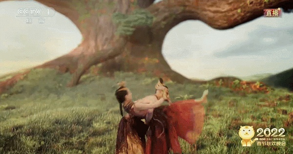 央视春晚的《金面》以三星堆文明历史为题材,使用电影化的拍摄手段和CG设计制作+光学捕捉技术,在虚拟空间中展现了双人舞蹈,少女穿越千年来到古蜀,邂逅金面少年,二人在神树下共舞,带来了一场奇幻的视觉盛宴。