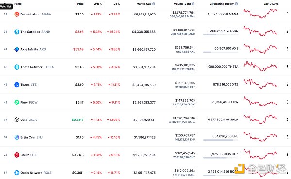 NFT总市值、市值排名前十项目 数据来源:coinmarketcap