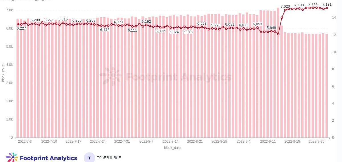 NFT业务还没有测试以及验证这个新的以太坊升级它如何处理增加的需求负载。在9月13日TheMerge之后,NFT交易的数量并没有任何飙升,如下图所示。