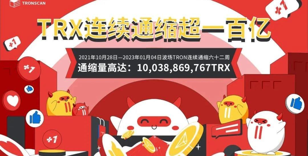 TRONSCAN最新数据显示,过去六十二周,TRX持续处于通缩状态,通缩量达100.38亿枚TRX!