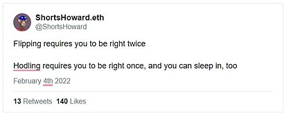 活跃的交易者试图做出两个正确的决定--进场和出场--而收藏家只需在进场时做对一次(而且可以更好的分配时间和金钱成本)。