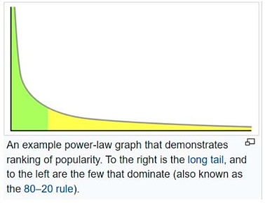 NFT很可能遵循一个幂律,即最好的NFT或NFT集合的回报率高过投资组合的其他部分,然后是相当多的强者和平庸者(然后是大量的0,即所谓的 "长尾")。
